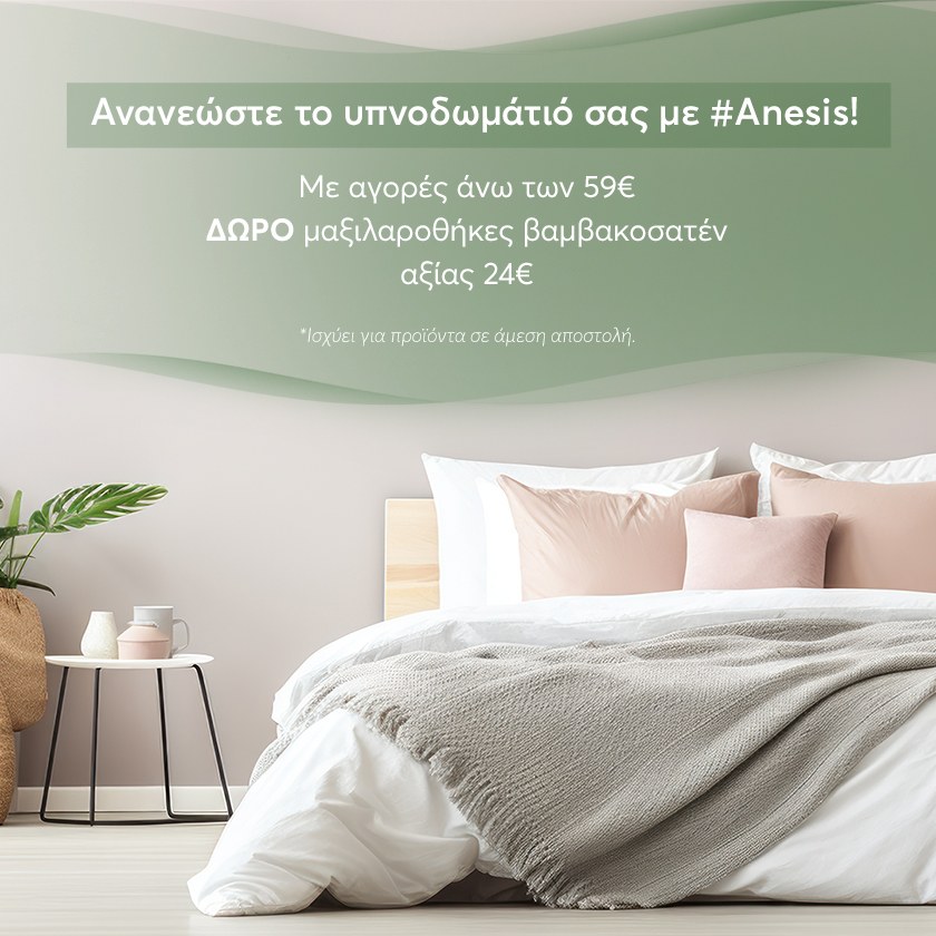 Ανακάλυψε τη μαγεία του χειμώνα με τις Συλλογές #anesis και γέμισε το σπίτι σου ζεστασιά και άνεση. Τώρα, επωφελήσου από προσφορές έως -50% σε φανελένια και παιδικά σεντόνια, κουβερτοπαλώματα, βελούδινες κουβέρτες, παιδικές παπλωματοθήκες και πετσέτες για έναν χειμώνα γεμάτο θαλπωρή και στυλ.